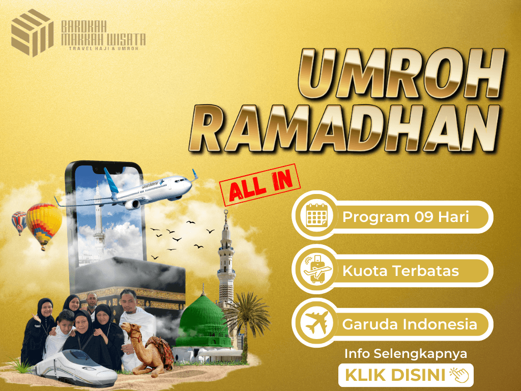 - Perlengkapan : Koper kabin, koper bagasi, tas paspor, kain ihram/mukena, tas sandal, buku manasik, kain batik, syal, & sabuk ihrom, baju koko, bergo panjang, bantal leher